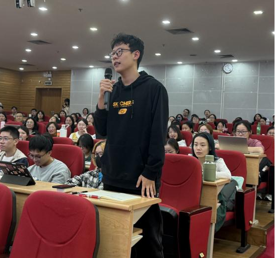 在讲座后的交流环节,同学们积极提问,内容包括学校是否应增设AI学习课程、AI时代译员是否会被迫处于被支配地位以及AI使用频率及评估标准等问题,Burian教授耐心地为每位同学提供了专业的建议。她通过分享自身经历,指出译员具有独特的价值,并非处于被支配地位,鼓励学生正确看待AI工具,增强专业自信。