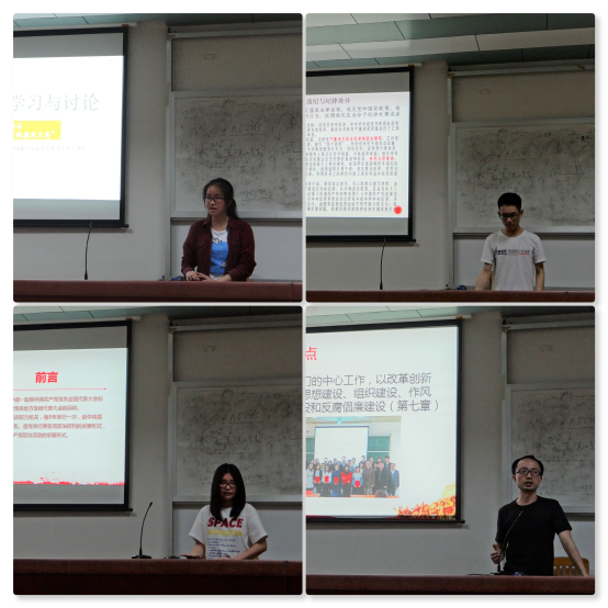 本次大会主要由入党积极分子和发展对象组成的四个小组进行党章教学。第一小组负责讲解党员的八大义务与八大权利。他们列举了关心留守儿童的藏族干部和腐败的“两面”贪官等正反事例,以此告诫各位同志充分履行党员义务和正确行使党员权利。第二小组则详细了讲解党员纪律处分条例,该组通过一系列党内腐败案例向各位同志普及了关于党员违法犯罪以及违反各种党内纪律的处分规定,规范了大家的言行纪律。刘亮老师也就“高校女生网络发布辱华言论引众怒”事件告诫各位同志不要做两面派,应该言行一致,端正态度,争做一名优秀的共产党员。第三组阐述了党代会的程序、作用和职责。第四组则详细解读基层党组织相关管理条例。他们强调了党员“保质”的重要性,即通过定时定量学习,批评和自我批评,党员互相关怀深入交流来提升党员的质量。他们还提到,党员应通过坚持民主选举和基本原则,发展基层党内民主与监督,同各种错误倾向和违法乱纪行为作斗争。最后,该组还督促大家认真学习党课,严守纪律条例,争取在思想上和程序上都入党。