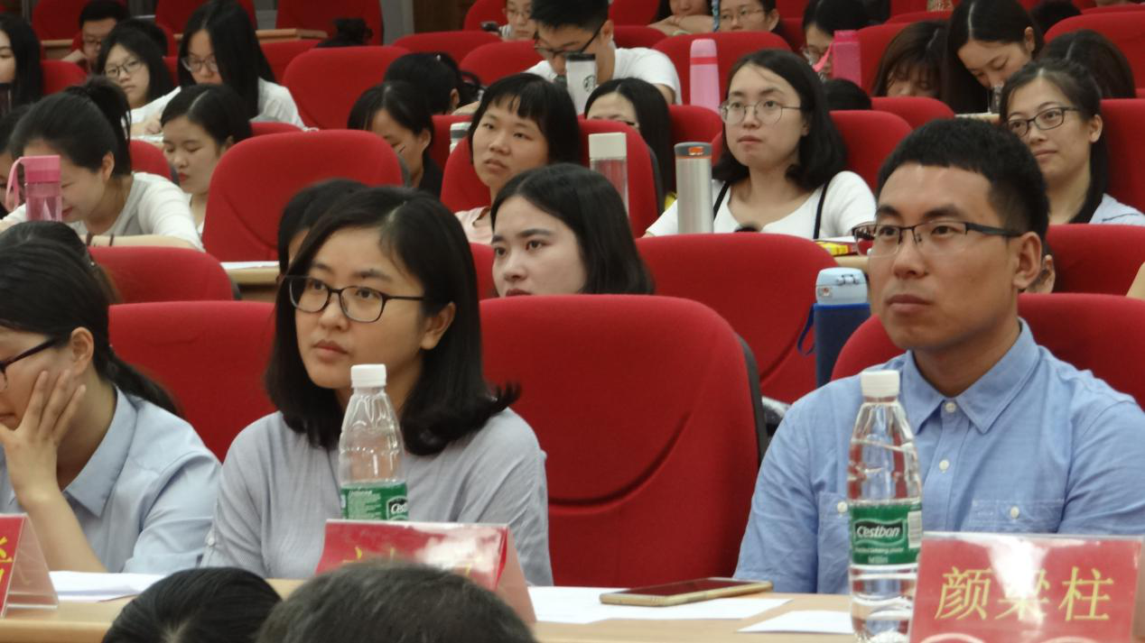 28位预备党员面对鲜红的党旗许下神圣的诺言后,冯益谦教授做党员教育报告。他从自身经历出发,将自己五十年的从教生涯娓娓道来,又从如何做一名政治合格、纪律合格、品德合格、作风合格共产党员,如何正确处理金钱与责任、做人与做学问、自我与他人三个关系,如何积极树立标杆意识,如何守住做人、做事、交友三个底线等四个方面分享了他对争做全程合格共产党员的理解和认识。台下的党员和入党积极分子都认真聆听,努力学习。