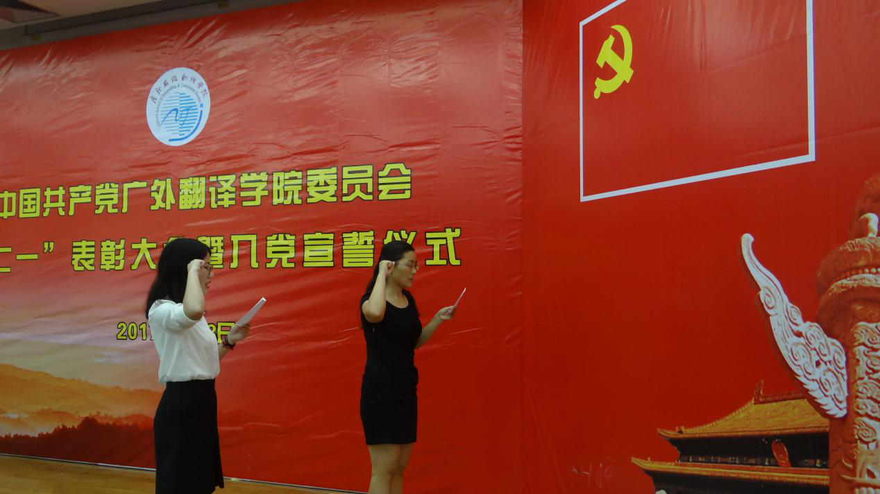 预备党员在教师党员、学生入党介绍人带领下宣誓