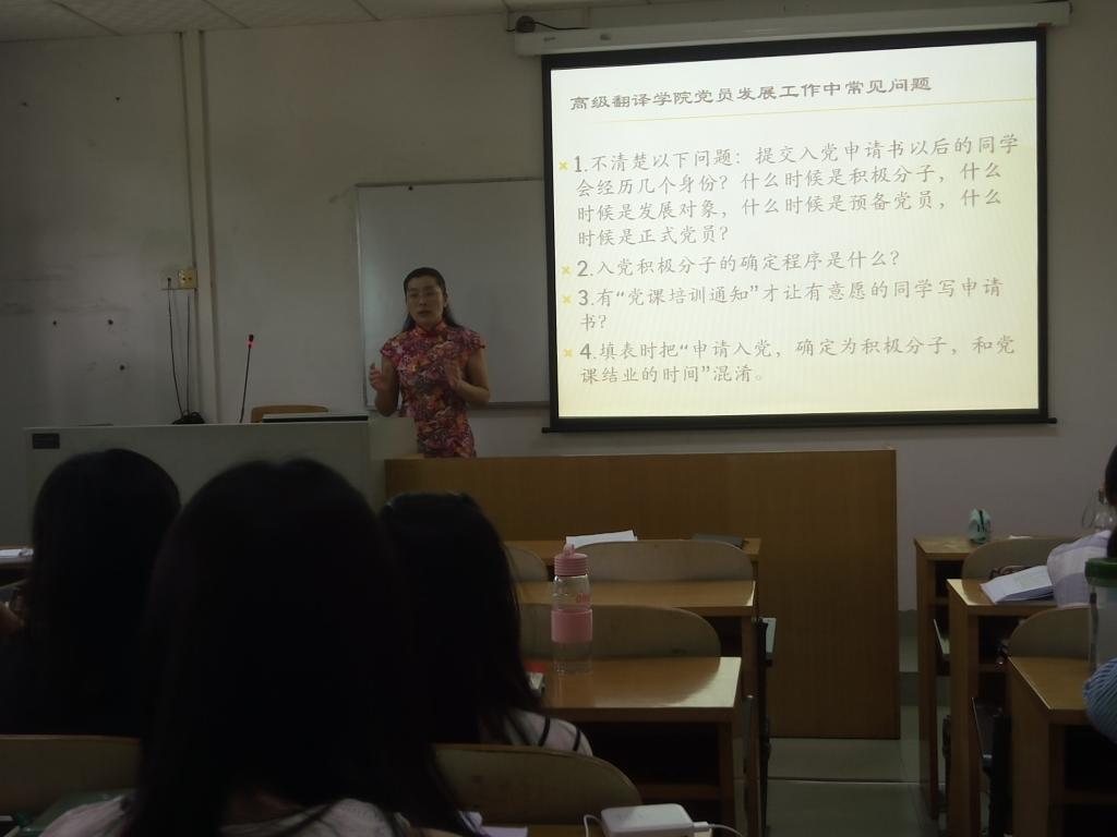 随后,杜焕君副书记从入党的5个阶段、25道程序,向大家讲解党员的发展过程,指出入党过程中常见的问题和错误。从递交入党申请书,参与党校培训,到递交思想汇报,再到一对一谈话,这一系列严密的步骤不仅让入党积极分子和发展对象明白党对发展党员的重视,更要求大家明确入党动机、严守党的纪律、接受党的考验。