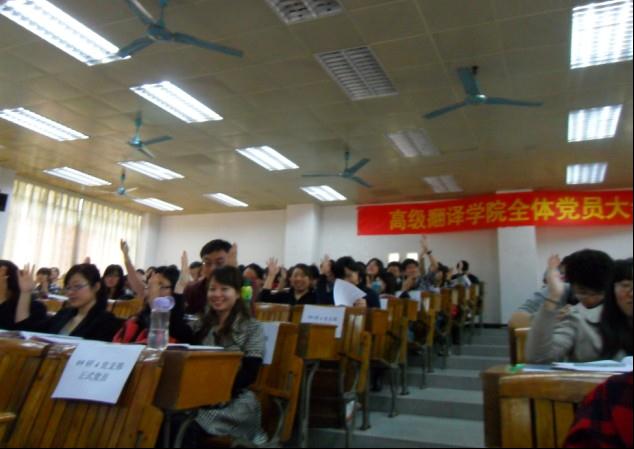 今年是中国共产党成立90周年,也是“十二五”规划的开局之年,根据学校党委的工作安排,3月31日下午2:30,翻译学院第二次全体党员大会在北校二教217顺利召开。会议由党委副书记杜焕君主持,党委书记高云坚,翻译学院院长平洪等全院134名党员参加了本次会议。大会完成了中共广东外语外贸大学翻译学院党委换届暨广东外语外贸大学第三次党员代表选举,会后各党支部还对第三次党代会党委委员和纪委委员候选人预备人选进行了第二轮酝酿推荐等工作。