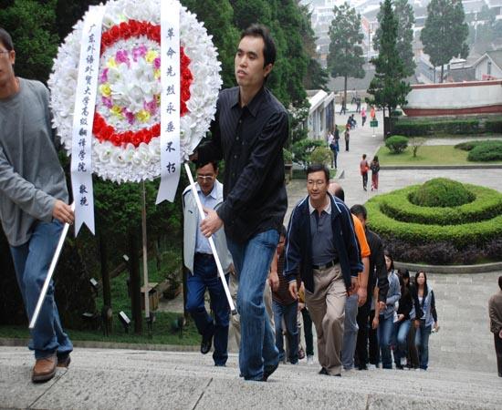 10月12日一早,学院参观团来到了斥资两亿元建造的“井冈山革命博物馆”。大家通过图片、文字、视频、雕塑、原件、复制品等了解到中国工农革命军在井冈山上战斗了两年零四个月的点点滴滴。之后,我们参观了“茨坪毛泽东旧居”。上午行程的最后一站是“井冈山革命烈士陵园”。我们一行列队缓步走上台阶,为革命烈士敬献花圈,并向革命烈士三鞠躬、默哀。