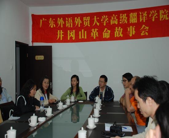 2008年10月10日,高级翻译学院党委组织学院教职工党员、教职工代表、词典学中心党支部书记、学生党支部书记、研究生方向负责人及团学干部等一行35人在学院党委书记梁学宏的带领下,前往江西井冈山革命根据地进行为期两天的“红色之旅”。这次活动的主题是:游革命圣地,学井冈精神。学院党委策划本次活动的目的是在参观中国革命摇篮和讲述革命故事的过程中,对党员和学生骨干进行思想教育,提高党员和骨干的的思想觉悟和政治素质。