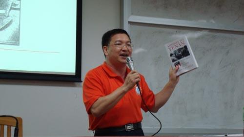 首先,梁书记通过一系列的历史资料介绍了《延安使命》这部著作的历史背景。包括作者简介、抗日战争时期的美日中三角关系、美国总统罗斯福与中国的渊源等。还介绍了当时对中美关系作出巨大贡献的许多美国的“中国通”,其中便有被称为“美军观察组之父”的戴维斯(John Davies)。然后梁书记便把话题自然地引入曾在美国制订对华政策上有过极其重要影响的美军观察组。通过幻灯片和具体资料以及图片,大家深入了解了当时美军观察组在中国特别是延安的活动情况及他们的目的与具体任务。除此之外,梁书记更是介绍了当时担任美军观察组的中国翻译黄华和凌青,称赞他们的杰出贡献,号召大家学习他们那种兢兢业业的工作态度、毕生为翻译事业的发展而作出的不懈努力。接下来,梁书记简短地向大家描述了中国革命胜利时美国的对华政策、中美关系的解冻、中美建交的奠基者、冷战后的中美关系,还回顾了布什总统的对华政策。最后,梁书记提出中美关系要面向未来,经济全球化与国家利益使中美关系互相依赖的程度加深。世界上最大的发达国家与最大的发展中国家的未来之路应是沟通、交流与合作。在热烈的掌声中梁书记结束了精彩的演讲。