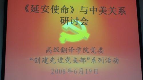 6月19日晚,高级翻译学院党委“创建先进党支部”系列活动之《延安使命》与中美关系研讨会在四教424举行。学院近八十位教师和学生党员、预备党员和入党积极分子参加了研讨活动。