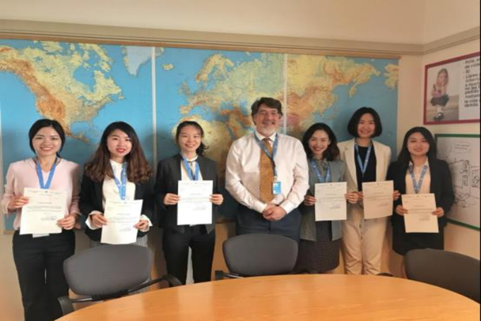 联合国日内瓦办事处口译处代理处长Georges Dupuy为学院实习生颁发证书