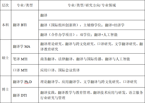 高级翻译学院全国第一所建立了本—硕—博完整翻译专业人才培养体系的单位,是亚太地区高素质、国际化、融通型翻译人才培养高地。首倡 “翻译硕士专业学位(MTI)”教育,组织制定“翻译专业本科教学质量国家标准”,拥有国家级同声传译实验教学中心和全国翻译研究资料中心,主办Chinese Literature and Culture国际期刊。