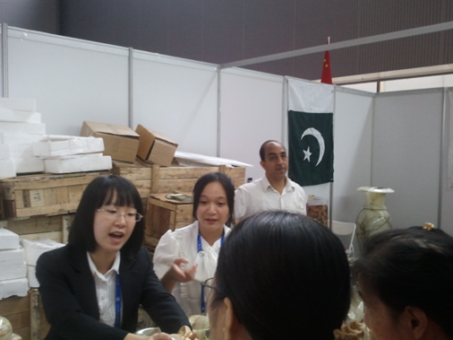 巴基斯坦参展团此次在中博会上共有7个摊位,展览的产品包括纺织布料、纯牛皮工作装、拳击用品、护肤品、皮革外套手套制品、手工羊毛地毯以及玛瑙。在工作的过程中,每个摊位平均配备1-2名翻译。同时,由于部分摊位生意较为兴旺,销售翻译和英文摊位解说人手较为紧缺,所以适当减少小型摊位的人手,增补大摊位的翻译人员。现场秩序良好,人手安排妥当,每个摊位都能得到足够的翻译协助,参展商表示翻译非常得力。