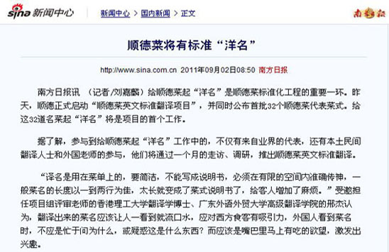 附图:邢杰受邀担任“顺德菜英文标准翻译项目”评委,广州日报和新浪网相继报导