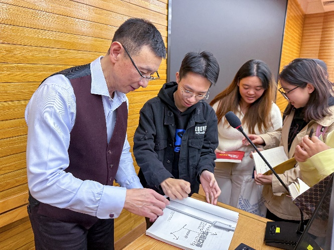 在Q&A环节,林博士耐心回答了关于口译学习、人工智能翻译伦理、译员立场策略、文化负载内容同步性、客户沟通和创新思维能力等问题,为同学们提供了专业建议。