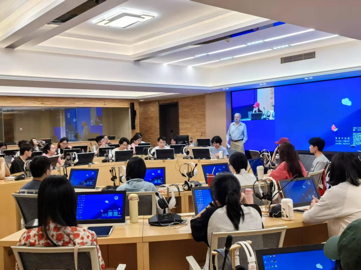 4月25日,David Smith与我院教师王丹副教授在六教A201教室开展中进英同传联合教学。 David Smith从英语视角切入,对学生的录音进行逐一点评,通过实际案例引导学生思考如何通过简化、调整用词和语言结构来提升语言输出质量,让学生更加注重英语的行文习惯,来自英语母语者的点评大大增强了学生的听众意识和交流意识。王丹则从中文语境出发,强调学生应该通过分析句子来分清信息的主次,运用简单句型将关键信息带出。此次联合教学内容详实,丰富了学生对于同传信息处理与表达技巧的认知。