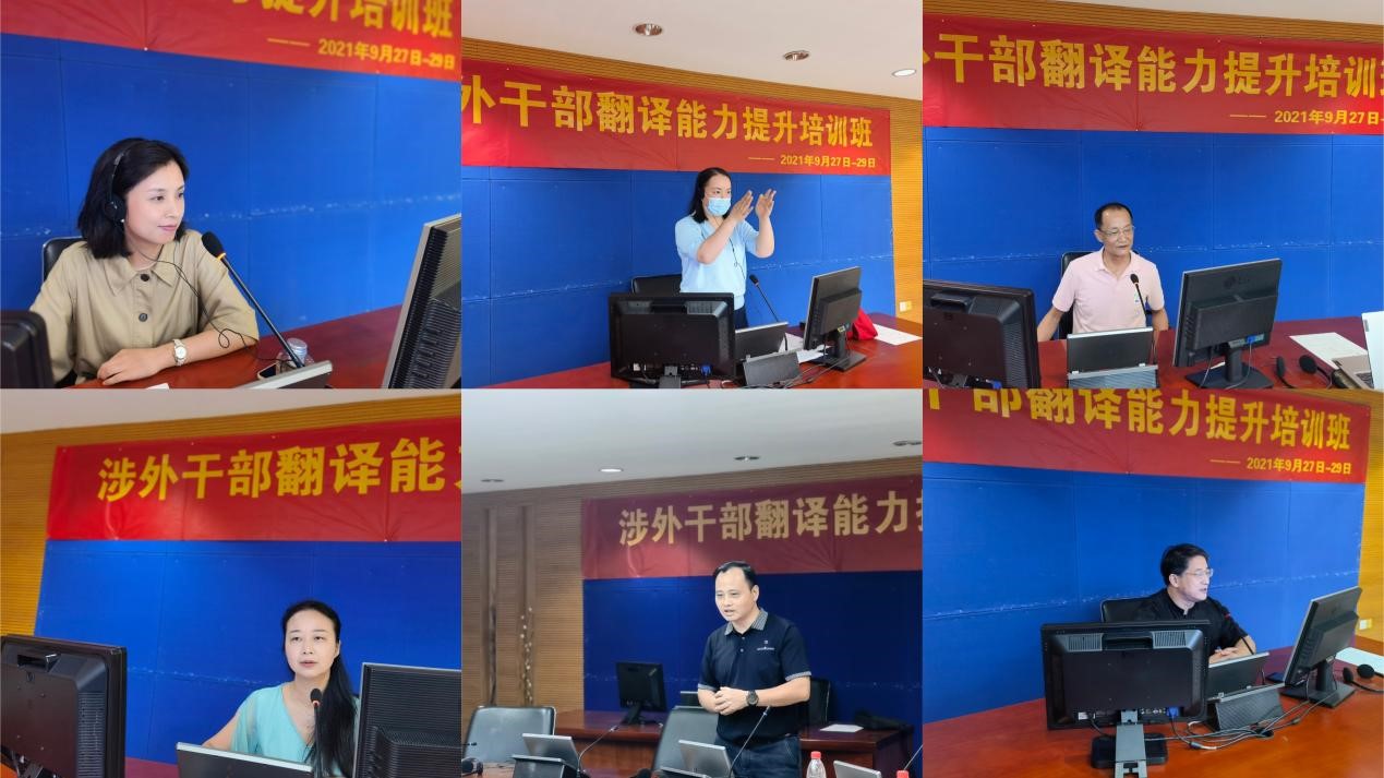 9月29日下午,为期三天的2021年广州市涉外干部翻译能力提升培训班圆满结业。期间,来自广州市直单位及区政府单位、河北石家庄市的涉外干部50余人参加学习。本次培训班由中共广州市委外事工作委员会办公室主办,我院与广州市外事翻译室共同承办,我校国家级同声传译实验教学中心协办。