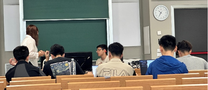 除理论课程外,同学们还进入实验室,在两位助教的带领下分组开展项目研发。三个小组分别负责基于机器学习的预测系统、大语言模型聊天机器人以及数据可视化仪表板网页的开发。同学们积极应用课堂所学,主动探索、密切协作,在实践中提升了技术应用与团队合作能力。