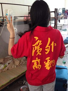 首先是“衣”。如高翻学院以往的三下乡队伍一样,筑梦队员在工作时间只着队服和院服。2013届三下乡的队服以浅粉为底,上印“筑梦队”三个黑色大字、“高翻”和“SITS”则是黑色小字。拿到队服时,女生神色自如,但男生忍不住发牢骚:这颜色实在是太娇嫩了!幸好在男生浑身不自在地穿上之后,整体一看,效果倒是相当不错,浅粉的衣服把每个人都衬得朝气蓬勃——本来,青春的我们也当娇嫩。