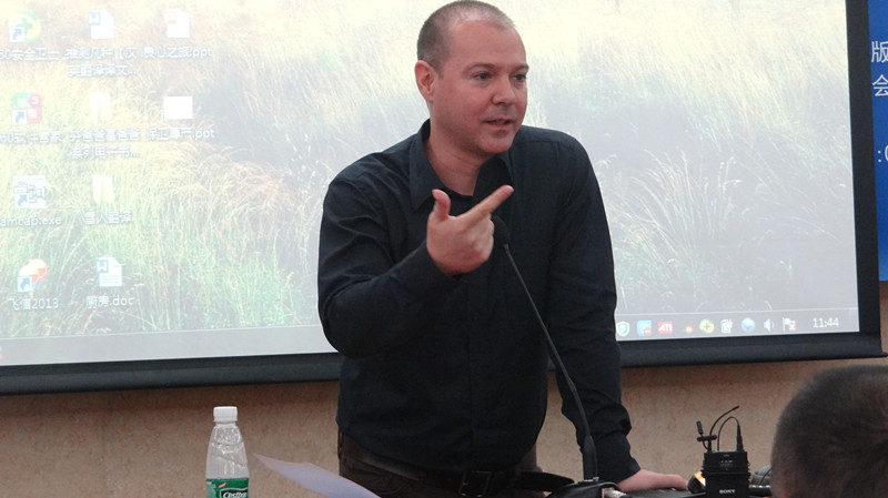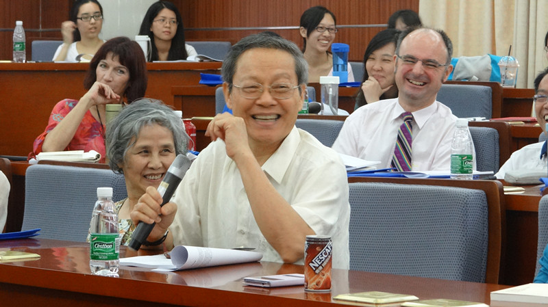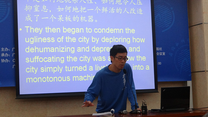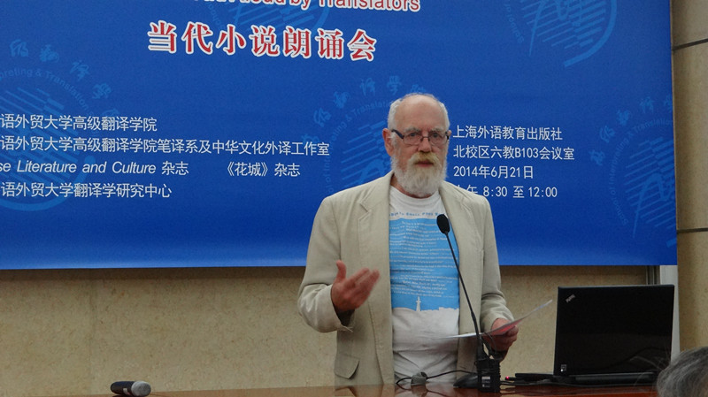 作为本次活动主要发起人之一的褚东伟首先朗诵精心挑选的译作片段,受到听众阵阵掌声,外籍作家、诗人FraserSutherland赞其行文流畅,也中肯地给出细微修改建议,褚东伟称,FraserSutherland作为单语背景的英语母语人士,对译作给出的意见相当真切而有价值,并强调译作采用单语背景审校的重要性。之后,李明副院长朗诵译作《推测几种》片段,由我院加拿大籍留学生温仕豪作点评,师生互换点评角色、其乐融融交流探讨的景象,是我院译学精神最真实的写照。欧阳利锋与外籍评委Stephen Rake别出心裁,先评后诵,高度赞扬了《爱情研究》作者李银河的研究成果及开拓精神,以及她对中国社会学的贡献,而作为译者,是想通过该类文学的翻译,向世界展示中国正在觉醒的“性学”意识。这也正是中译外的宏观意义的体现。余东教授的《保卫老师》英译片段朗诵结束后,我校英教学院教师薛媛对文中一个动物身体部位的细节提出了疑问,该疑问引起了所有人的积极讨论,大家一致认为,翻译所需要关注的,不仅仅是词典里所注释的意思,还需要结合生活实际。这充分体现了丰富的经历及探究的精神对于译者的重要性。随后,英文学院教师许勉君朗诵译作片段,褚东伟评价称,许老师的参与对于本次活动意义非凡,这意味着,我院这样的活动并不仅限于院内,也欢迎全校有优秀作品的老师、同学共同参与,这也是将来“岭南译言堂”的发展方向。最后,作为本次译作中唯一一位英语母语的译者,牟传门朗诵译作《胡文青传》片段,其对中国历史和文化的深刻了解,在译作中充分体现出来,受到众人一致好评。