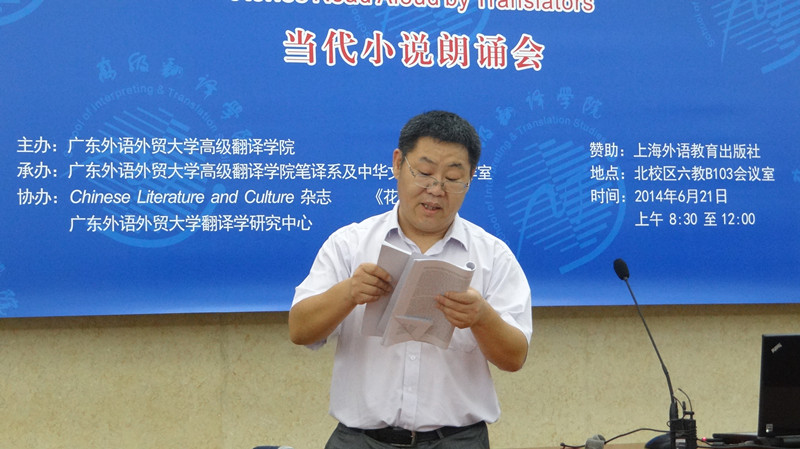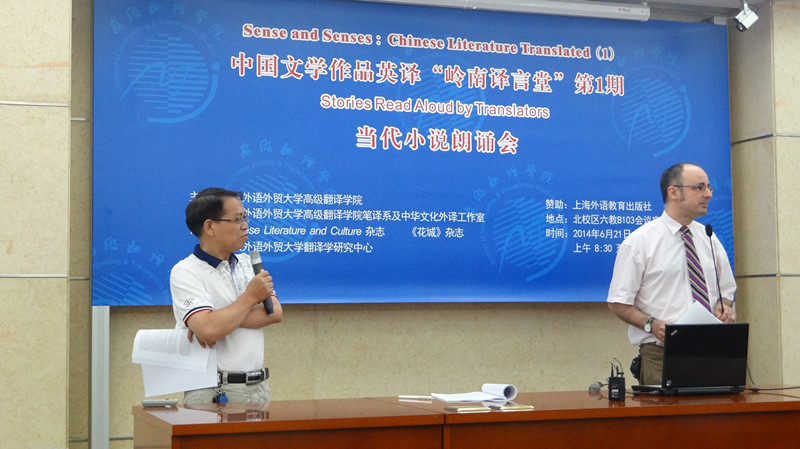 本网讯6月21日上午,我院成功举办中国文学作品英译“岭南译言堂”第1期——当代小说朗诵会(Sense and Senses: Chinese Literature Translated(1)—Story Reading)。本次活动为弘扬中国文学与文化、充分发挥高翻学院的笔译优势、带动我校师生从事中国文学英译的热情,由我院笔译系牵头,中华文化外译工作室承办,联合ChineseLiterature and Culture杂志、《花城》杂志及广东外语外贸大学翻译学研究中心共同协作,邀请我院口笔译教师及研究生、外籍专家、兄弟院校师生共聚一堂,聆听中国当代文学英译作品译者朗诵译作,并由外籍专家点评分享。