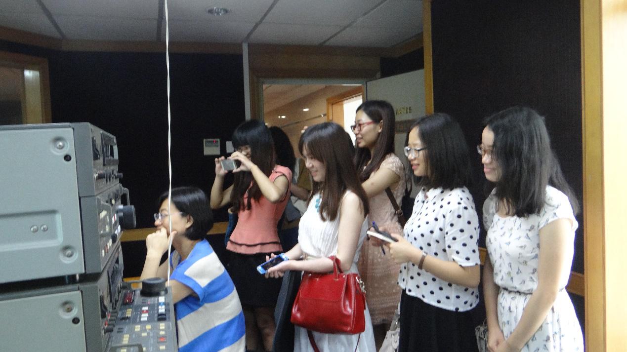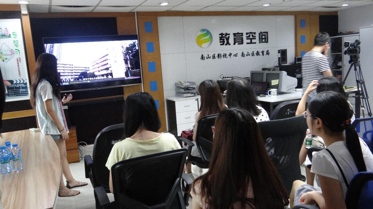 南山区影视中心主要负责深圳南山区新闻报道、电视栏目等的制作与播送。本次主要参观的是中心与区教育局共同主办的“教育空间”栏目的后期制作过程。其间,一行人观看了栏目组制作的微电影《悠悠球的故事》,纪录片《想当总理的女孩》,随后,节目组总导演、编辑、主持人及摄像等向一行人介绍了影片的创作背景和制作过程。高云坚书记高度赞扬了影片的教育意义,高清的视觉效果给人印象深刻。另外,一行人有机会进入演播室,亲自上台体验“主播”录制节目的全过程。最后,大家还有机会踏进录播总控制室,了解节目播送的控制流程。随后程效及节目组总导演在同众人的交流中指出,现在无论从事哪一行,中文功底和国学造诣,是同学们要好好努力的方面。