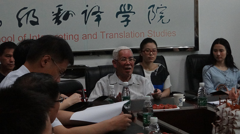本网讯6月17日下午,由组织部主办、我院教工党支部承办的党建工作坊之“弘扬社会主义核心价值观,树立青年教师道德新风尚”茶话会于翻译学院四教会议室召开,第一讲我院有幸邀请我校原校长黄建华教授担任主讲人,为我院青年教职工、博士生、硕士生分享人生经历和翻译感悟。我院党委书记高云坚、副院长李明、笔译系主任欧阳利锋、团委书记王斌、青年教师张丽华、钱芳、余怿、欧阳倩华以及博士、硕士生代表出席此次座谈会。翻译系教师邢杰博士担任主持。
