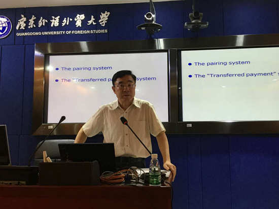 本网讯 5月8日,我校云山讲座教授、国家外文出版事业发行局原副局长兼总编辑、中国翻译协会副会长、翻译专业教指委主任委员黄友义先生做客我院,为14级国际会议传译方向的同学开展了题为“China: A Country withGreat Diversity”的全英讲座。讲座围绕中国国情的多样性展开,内容分为四部分:big and small、richand poor、 old and new、happy andunhappy。