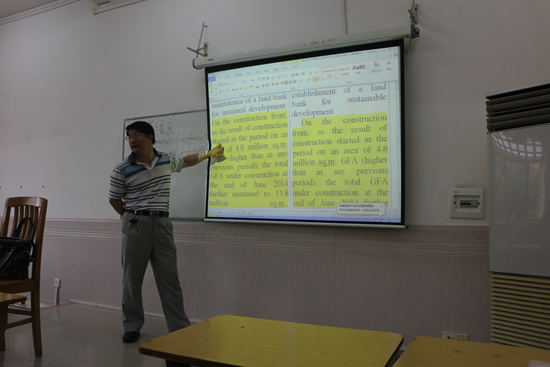 李明教授发表了结业讲话。他首先对各位学员这段时间以来的努力表示了肯定,指出这次学习只是一个引子,翻译的学习是一个持之以恒的过程,希望学员在结束本次培训班的学习后,在口译和笔译两方面都要坚持练习。接着,李明教授对本次培训作了总结,他认为这段时间的学习对各位学员来说是一次不错的体验,是一次值得回忆的旅程。最后,他对富力地产对翻译学院教学的认可和支持表示感谢,也感谢高老师对培训班工作的帮助。