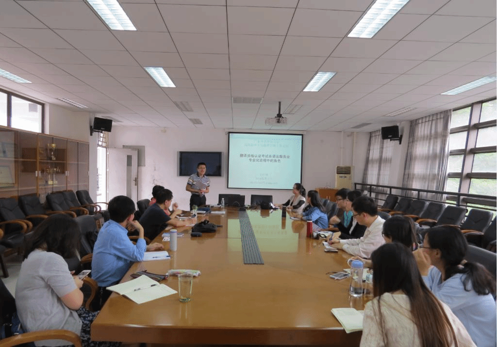 3月31日下午,我院翻译学博士论坛在六教A421如期进行。本期论坛的主题为“翻译资格认证考试在语言服务业专业化进程中的角色”,由2014级翻译学博士生赵护林主讲。