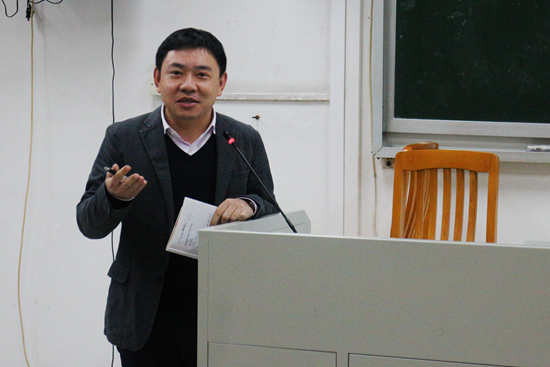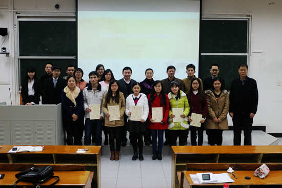 大会开始前,全体观众观看了四支队伍的宣传视频,对其本学期取得的成绩有了基本的了解。随后,新任院长赵军峰发表了讲话。首先,他表示很高兴能参加今天的总结大会。在他看来,积极参与学生活动不仅能让同学们更加了解自己,也能让自己更加了解院内各项事务的运作情况;其次,他结合了我院的基本情况,阐述了四支队伍对学院发展的重要性。我院一向秉承“育人为本”的理念,从05年建院以来就重视人才的培养,并制定了本科翻译标准和人才标准。而四支队伍的建立,则与我院“科研创新与服务社会并重”的理念不谋而合。10周年院庆将至,他鼓励四支队伍更上一层楼,在担负起翻译专业学生文化传承的使命同时,不断增强自主创新、服务社会的能力,以成为日后能够实现翻译公司化运营的人才;最后,赵军峰用生动形象的比喻,重申了人才应与企业及社会实现无缝对接的重要性。他把大学里的学院比作“车间”,而教师就是“车间主任”,经过4年学习后毕业的学生就是车间生产出来的“成品”。对于我院这个“车间”来说,提升学生的实践能力是增强“成品”竞争力的关键,而四支队伍就提供了绝好的锻炼机会,既能给同学们提供展示自己舞台,也能让他们在实践中为社会作出贡献。