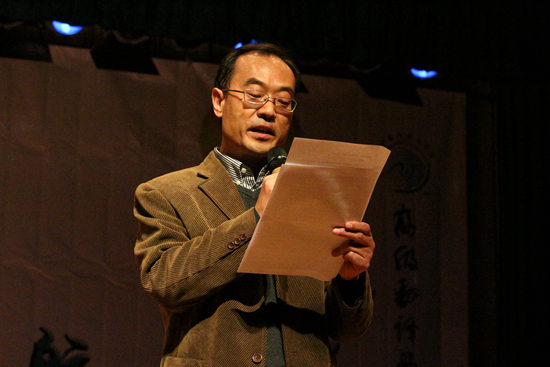 校舞蹈队精彩的开场舞点燃了全场观众的热情,在一片热烈的掌声中,我院院长赵军峰发表了晚会致辞。赵军峰指出,翻译学院的辉煌,是我院师生手牵手、心连心共同铸造的。在过去的一年里,我院学子在各种比赛中屡创佳绩,收获了累累硕果。2015年,我院将迎来10周年院庆,他希望在这充满纪念意义的一年里,我院能在全体师生的共同努力下创造更优秀的成绩,走向更美好的未来。