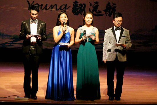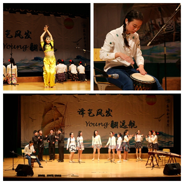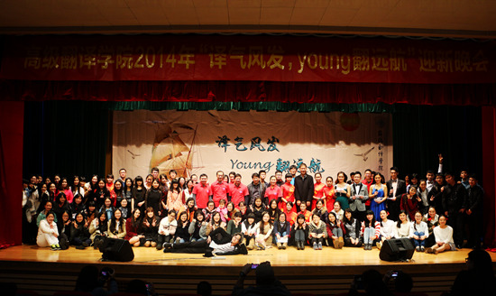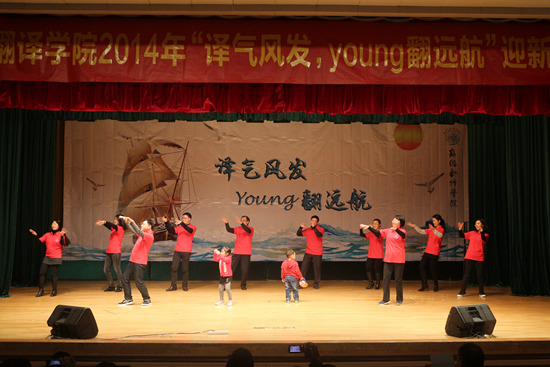 本网讯12月30日晚7点,我院2014迎新晚会在六教报告厅隆重举行。晚会以“译气风发,Young翻远航”为主题,不仅传达我院学子辞旧迎新的美好愿望,也展现出了他们昂扬向上的青春风采和拼搏不息的进取精神。
