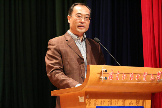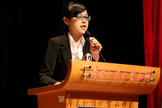 比赛的开始,主持人首先对比赛规则作了详细的讲解。随后,高级翻译学院新任院长赵军峰发表致辞,他指出学院一直致力于为学生们提供良好的学习环境,建设优秀的学风。作为我院的品牌活动之一,“高翻杯”系列学术赛事更是为同学们提供了锻炼、展示自己的舞台。他还肯定了优秀学子在往届口译大赛中取得的优异成绩,同时也赞扬了我院学子为社会作出的贡献。他寄语高翻,希望翻译学子取得更好的成就,作出更大的贡献,也祝愿参赛选手取得成功。