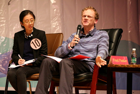 两轮比赛结束后,联合国资深译员陈锋先生对本次大赛进行了点评。他肯定了各位选手的精彩表现,特别是第二部分的对话口译环节,让他印象深刻,全场观众也都十分享受。但选手的表现也有一些不足之处,如部分选手理解有误,不能准确翻译材料的内容;或是心理素质不过关,影响到临场发挥;或是手势运用太频繁,有喧宾夺主的味道。此外,陈锋先生认为大部分选手的笔记已经做得很好,最为重要的是听力提高的问题。他建议选手们着重锻炼自己的听力技巧,通过扩大阅读量增加知识的积累,这样不仅能在比赛规定的时间内有更好的表现,还能准确翻译出“西游记”“唐僧”这些词汇而不至于闹笑话。他提出,翻译的道路漫长而艰辛,祝愿学子们能够“苦中作乐”,享受学习翻译的过程。