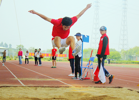作为上一届校运会大放异彩的“高翻飞人”,我院选手林雄辉更上一层楼,以完美无缺的表现获得男子学生组三级跳和跳远的双料冠军。在去年的比赛中,他虽因大腿拉伤获得亚军,但其精彩的表现依旧振奋了赛场上的高翻人,取得了前所未有的突破。而今年今日,林雄辉红衣白裤,依旧站在了他熟悉的跳远赛场上,目标则是男子三级跳和跳远的冠军。比赛一开始,林雄辉就成为了全场的焦点。裁判员一挥旗,只见他弓着腰,双手紧握拳头,两眼盯着前方。突然,他猛地一甩头,迈开大步,一阵箭走如飞的狂跑,速度愈来愈快,几个潇洒的跨步后,猛地一跃,两腿向前伸展,在空中划出了一道弧线,旋即落在了沙池里。同时,看台上迸发出一阵热烈的欢呼声!林雄辉以压倒性的优势获得了冠军!“功夫不负有心人。坚定的目标与不懈的努力就是通往成功的船票。”接受采访时,他如是说。