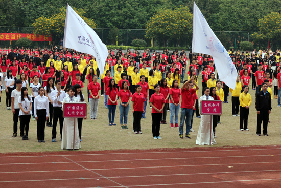 14日上午,我院学子身着火红的院服,参与了冬季阳光长跑活动。随后,校长仲伟合致开幕辞,党委书记隋广军宣布校运会开始。轻松欢快的开幕表演带动了全场的氛围,继武术表演之后全民健身大串烧之“全民乐翻天”上演了非洲舞“里约大冒险”和舞蹈“小苹果”,博得阵阵热烈的掌声。