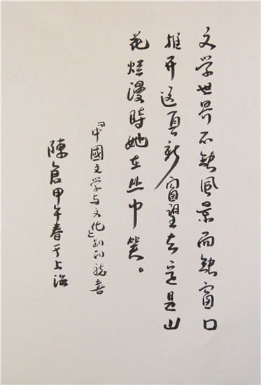 作家陈仓题词