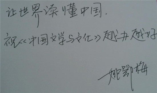 作家姚鄂梅题词