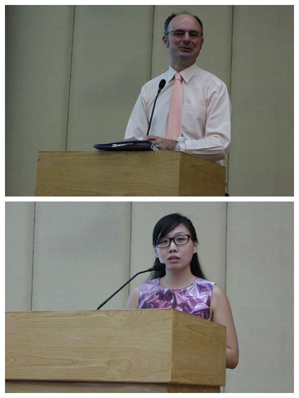 点评过后,比赛进入了最激动人心的颁奖环节。14级研究生邓婧文以流利的表达和出色的语音语调摘夺桂冠,14级本科生赵晨如以出色的舞台表现力和标准的语音荣获冠军。最后,本次比赛掌声中圆满落幕。