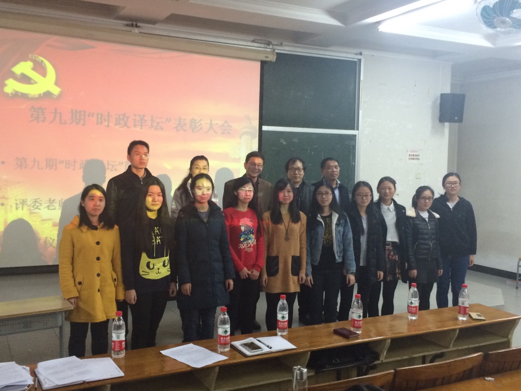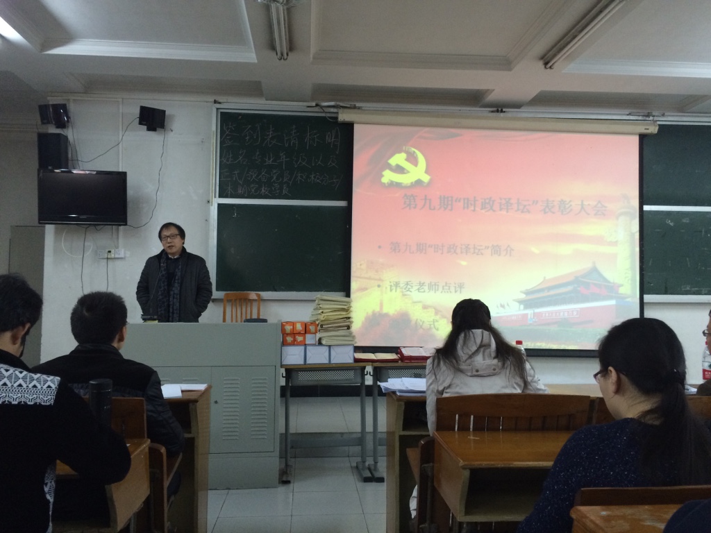 本网讯 12月22日下午2点30分,第九期“时政译坛”表彰大会暨党支委培训会在第二教学楼举行。本期“时政译坛”共收到102篇参赛稿,其中英译中68篇,中译英34篇。