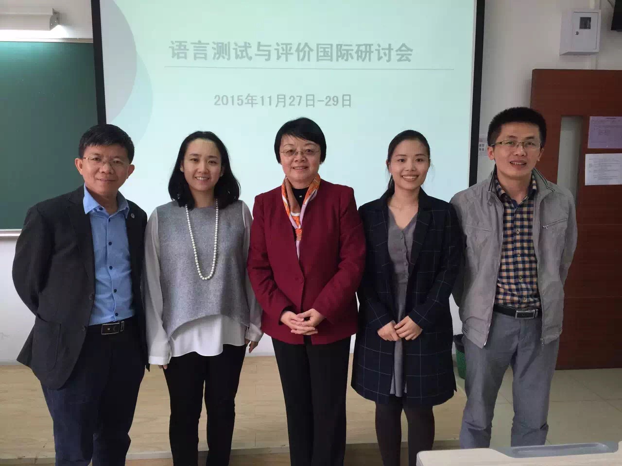 本网讯 11月27日-28日,语言测试与评价国际研讨会在我校北校区图书馆负一层报告厅和第七教学楼举行。此次论坛由广东外语外贸大学主办,教育部人文社会科学重点研究基地广东外语外贸大学外国语言学及应用语言学研究中心承办,教育部考试中心协办。我院穆雷教授、青年教师王巍巍博士、博士生许艺、刘建珠和赵护林参加了此次研讨会,并在研讨会上展示了教育部考试中心重大项目、2015年度教育部哲学社科重大课题攻关项目“中国英语能力等级量表建设研究”中“口译能力等级量表”子课题的阶段性研究成果。