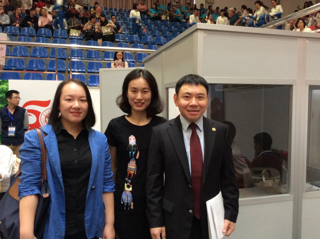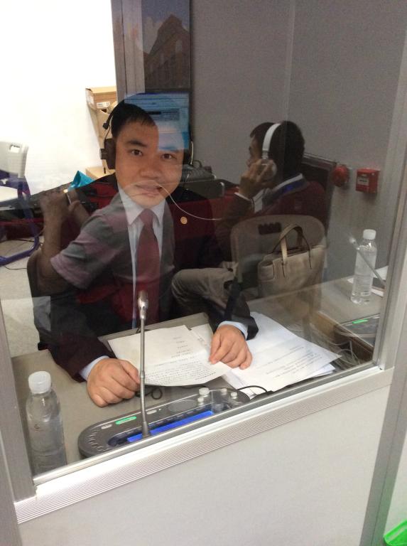 欧阳倩华与王丹老师在同传间工作