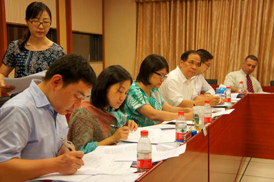 此次考试从7月4日开始,为期两天。考试邀请到高规格的职业译员组成评审委员会,考官包括:外交部翻译司英文处处长周宇、联合国纽约总部口译司资深译员陈峰、上海市外办翻译室白晓欣、香港理工大学江红和广外高翻学院詹成。其中,白晓欣、江红和詹成均为国际会议口译员协会(AIIC)会员。来自欧盟口译总司的资深专家Kunteel Barua全程担任观察员。