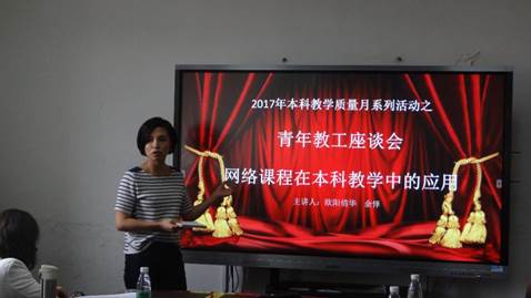 10月17日下午,我院在四教402会议室召开了主题为“网络课程在本科教学中的应用”的青年教工专题座谈会。本次座谈会由校“微课大赛”一等奖获得者欧阳倩华老师以及校“青年教学十佳”、校“微课大赛”二等奖获得者余怿老师主讲。院长赵军峰、党委书记刘志军、副院长詹成、院长助理唐芳以及教师代表钱芳、田璐、邹兵、许艺、陈庆、贾嘉、高菲等出席了本次讲座。