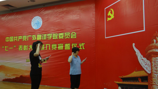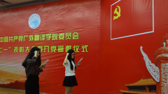 预备党员在教师党员、学生入党介绍人带领下宣誓