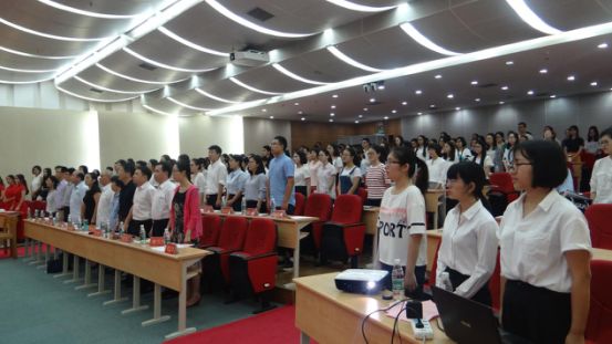 28位预备党员面对鲜红的党旗许下神圣的诺言后,冯益谦教授做党员教育报告。他从自身经历出发,将自己五十年的从教生涯娓娓道来,又从如何做一名政治合格、纪律合格、品德合格、作风合格共产党员,如何正确处理金钱与责任、做人与做学问、自我与他人三个关系,如何积极树立标杆意识,如何守住做人、做事、交友三个底线等四个方面分享了他对争做全程合格共产党员的理解和认识。台下的党员和入党积极分子都认真聆听,努力学习。