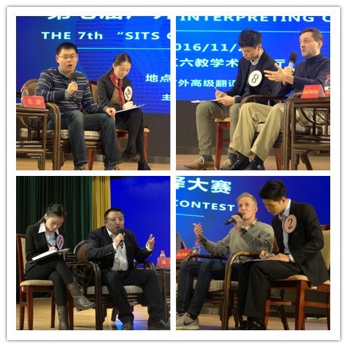 本次大赛分为两个环节。第一环节是短视频的英译中和中译英,由评委评定8名选手晋级。第二环节是对话口译,晋级选手分为两组,分别为四位嘉宾提供中、英文现场翻译。