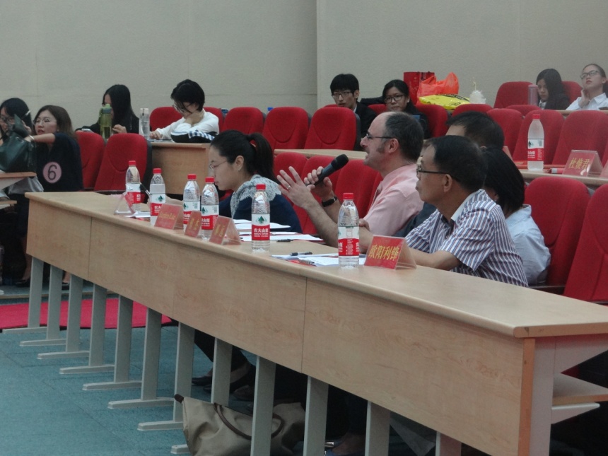 此次比赛的评委由副院长邢杰,笔译系主任欧阳利锋,外教Stephen Rake、郝远,以及田璐博士担任,党委书记刘志军、副书记杜焕君、辅导员颜梁柱、韩金彪作为嘉宾出席了此次比赛。14名选手研本同台,围绕“沟通的重要性”这一主题,展开了各具特色的演讲,或轻松风趣,或激情昂扬,或稳重沉静。他们精彩绝伦的演讲展现了高翻学子的风采,征服了全场观众,赢得阵阵热烈的掌声。