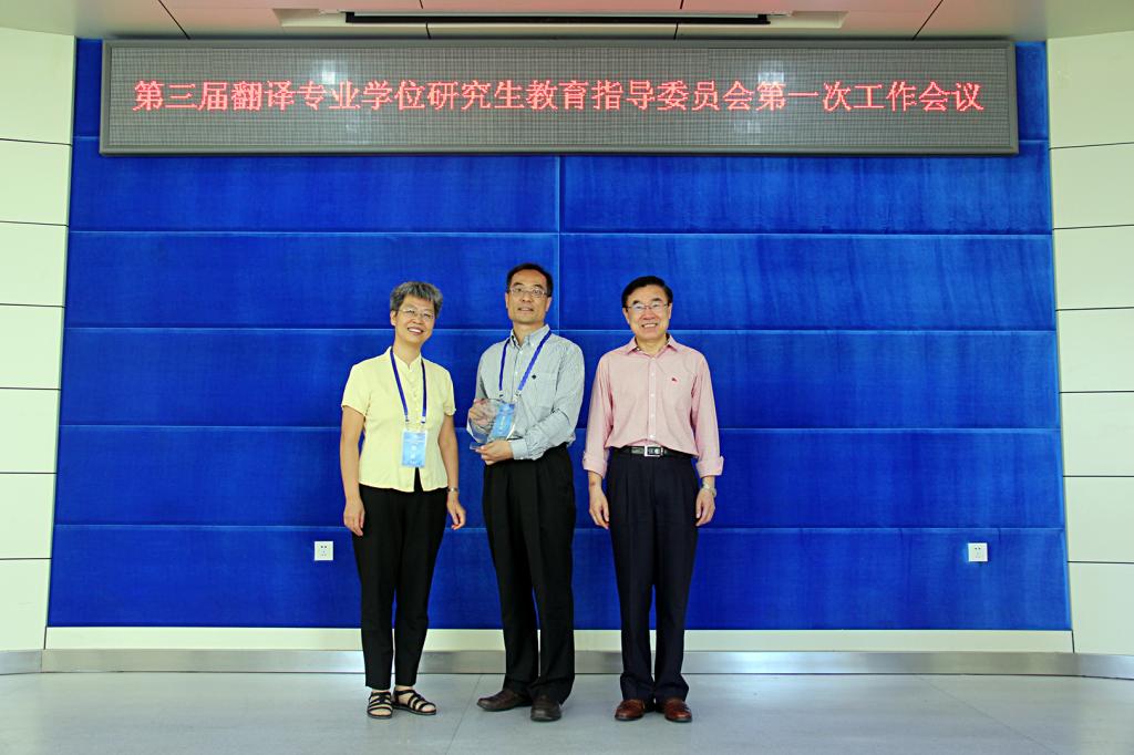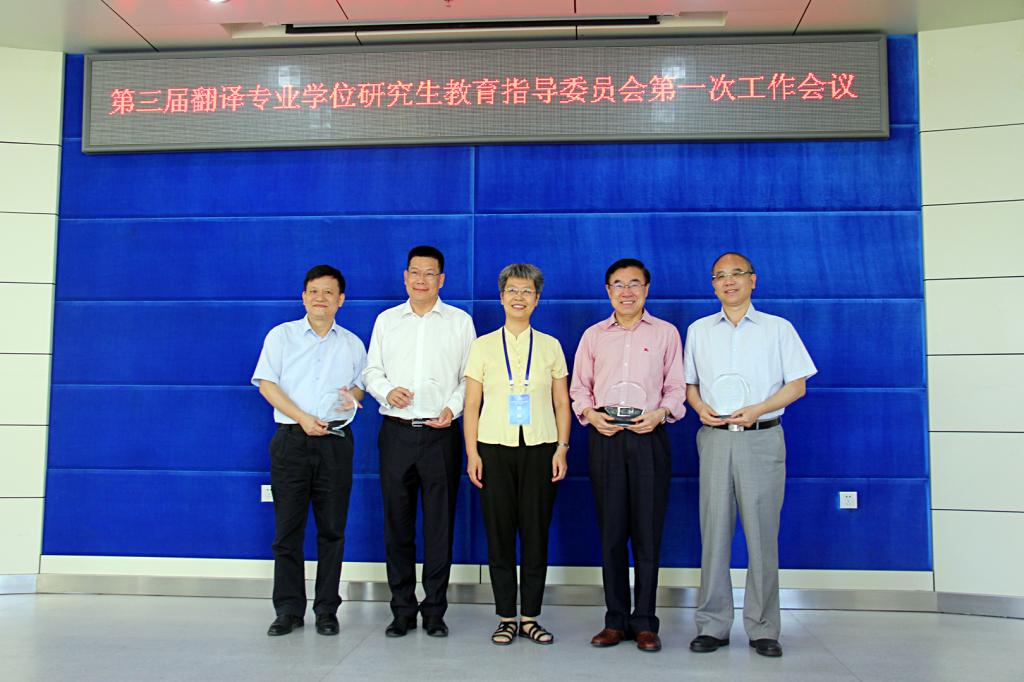 会议公布了国务院学位委员会、教育部和人力资源社会保障部关于翻译专业学位研究生教育指导委员会换届的决定,宣布了第三届翻译专业学位研究生教育指导委员会的委员名单。我校“云山讲座教授”、国务院学位委员会委员黄友义教授担任第三届教指委主任委员,我校校长仲伟合教授、南京大学许钧教授、湖南师范大学蒋洪新教授以及北京外国语大学贾文键教授担任第三届教指委副主任委员,我院院长赵军峰教授担任第三届教指委委员兼秘书长。陆敏处长和黄友义主任共同为第三届教指委24位委员颁发了纪念牌。