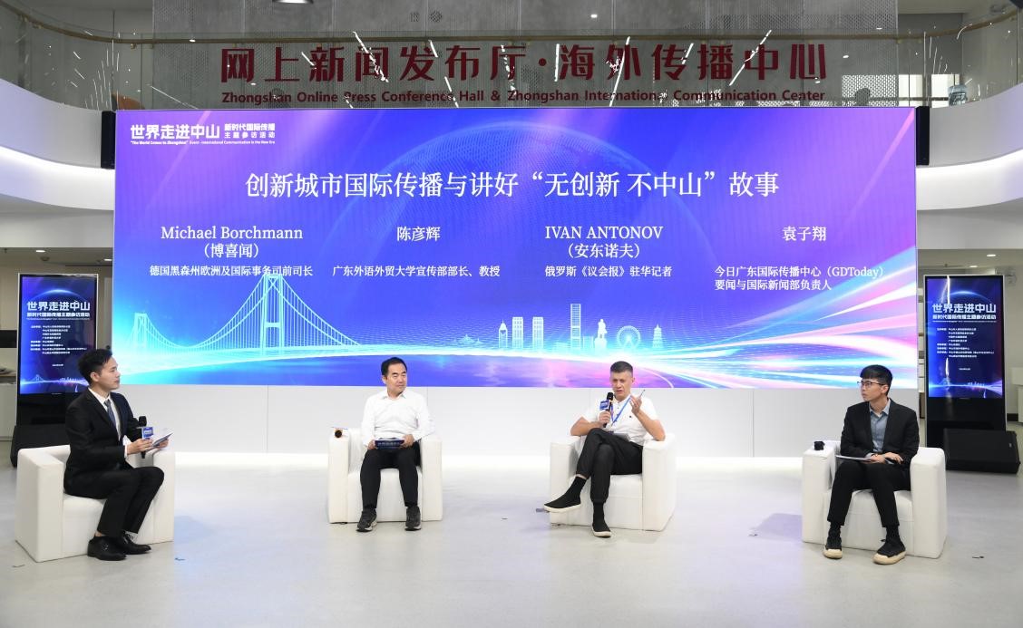 围绕如何创新中山城市国际传播与讲好“无创新不中山”故事,来自德国、俄罗斯的学者、记者和来自我校和今日广东国际传播中心的专家、新闻工作者展开交流对话。