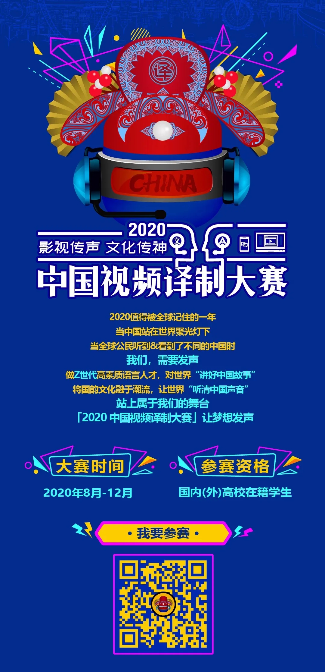 作为2020中国视频译制大赛的高校主办方,广东外语外贸大学翻译与国际传播研究中心盛情呼吁国内外高校在校学生踊跃报名参赛!欢迎有兴趣的各位同仁围观指导!