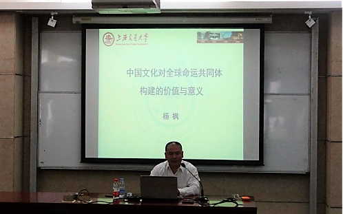 11月30日下午,一场以“中国文化对全球命运共同体构建的价值与意义”为主题的讲座在六教B103教室精彩开讲。本场讲座主讲人为上海交通大学外国语学院杨枫教授。讲座由我院副院长李明教授主持。