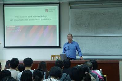 7号下午,岭南译学前沿讲座第147讲在四教424开讲。本次讲座由来自澳大利亚麦考瑞大学的Jan-LouisKruger教授主讲。Kruger教授主要围绕“视听翻译”这个主题来进行,介绍了视听媒介、视听翻译类型、字幕的定义和分类、字幕制作和视听翻译的其它类型、视听翻译及其可达性、字幕制作起来困难的原因、以及关于字幕的一些具有争议性难题。